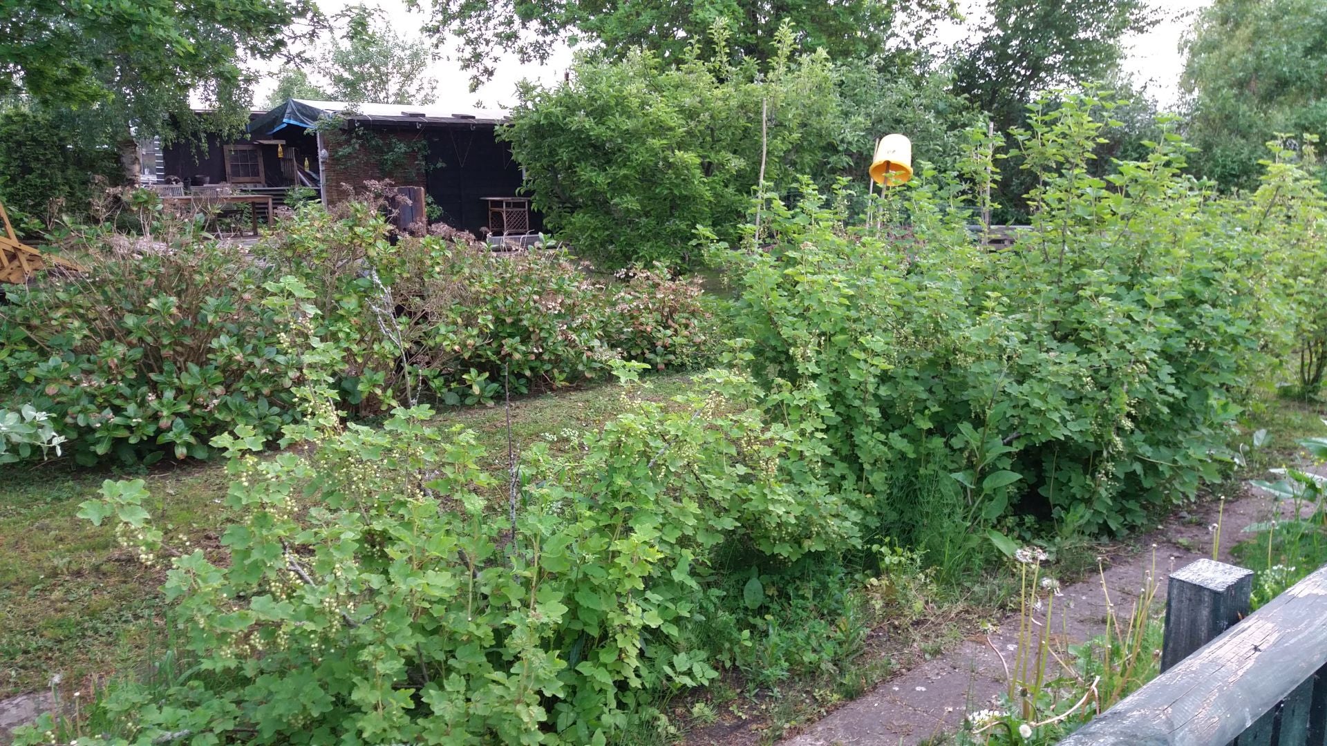 Toen wij een telefoontje kregen voor een stukje grond, vielen wij voor de landelijke uitstraling van het plekje. Een blokhut met veranda, moestuin, gazon, appelbomen, aalbesstruiken en dit geheel werd omsloten door 2 mooie eiken en een berk. Lang hoefden wij niet na te denken en al snel konden wij beginnen. Groot was de teleurstelling dat toen wij aan het huisje begonnen er behoorlijk wat rot was en veel schimmeldraden onder het zeil tevoorschijn kwamen. Goed, slopen wat weg moest en wat goed was laten zitten.